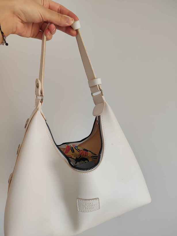 Çanta, dayanıklı suni deri malzemeden üretilmiştir. Beyaz rengi, her kombine uyum sağlayan zarif ve şık bir görünüm sunar.