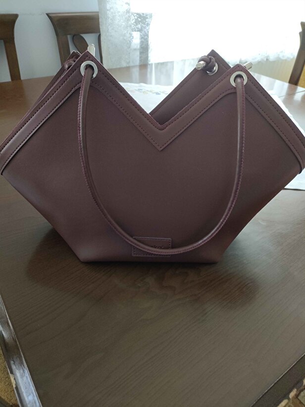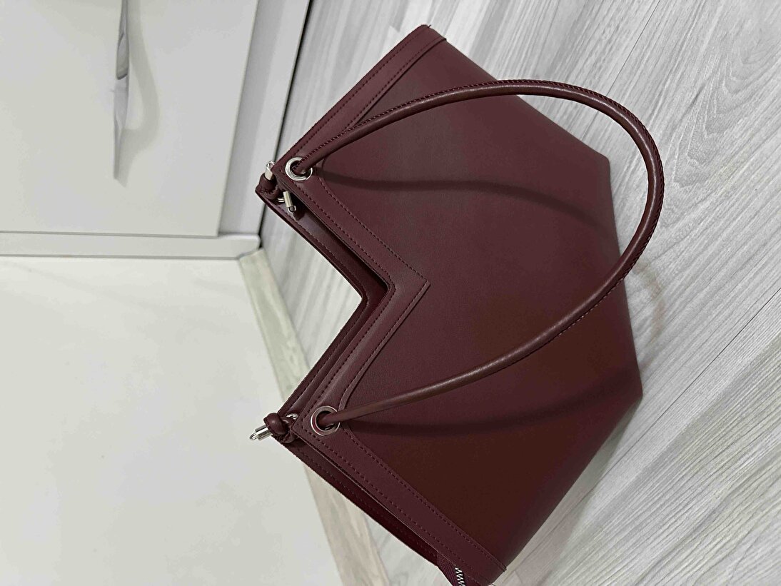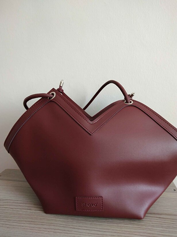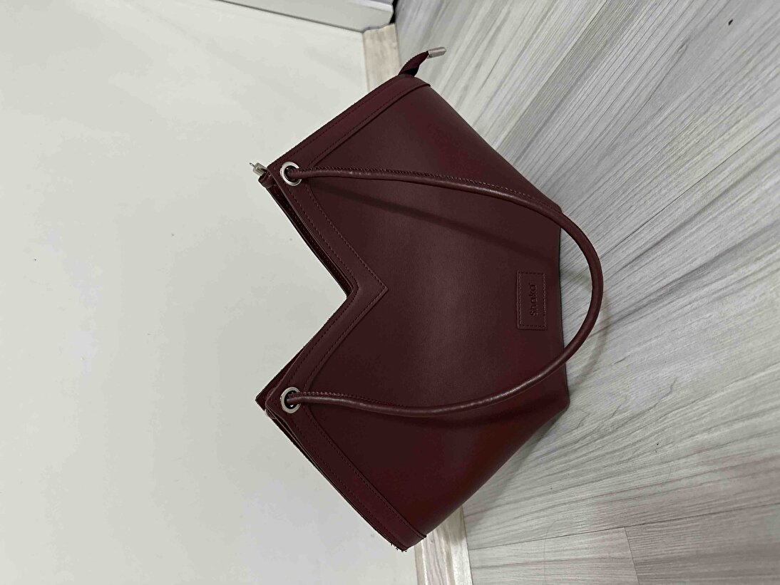 Derin bordo renk, çantaya sofistike ve modern bir hava katıyor. Asimetrik kesim detayları, çantaya özgün ve şık bir görünüm kazandırır. Minimalist tasarım, her kombinle uyum sağlar.