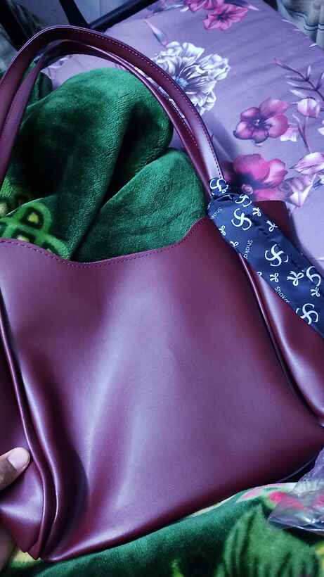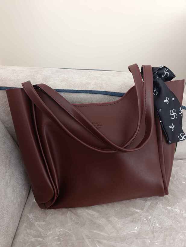 Bordo Kadın Omuz Çantası | Suni Deri | Fermuarlı | Tek Bölmeli | Fular Hediyeli | El, Kol ve Omuz Çantası