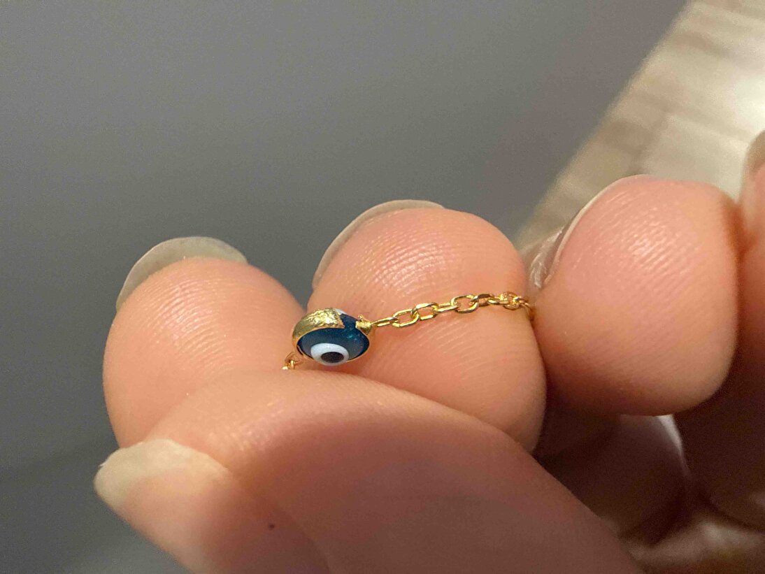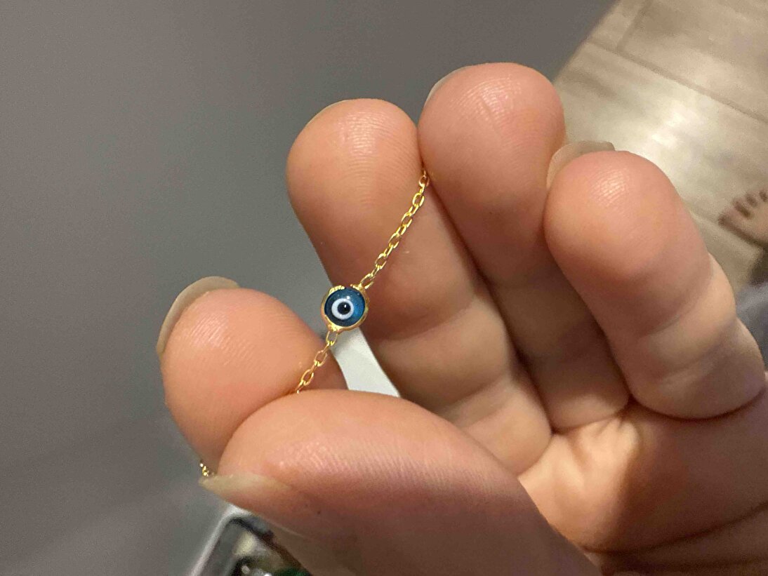 Gümüş Altın Yaldızlı Cam Göz Nazar Kadın Kolye, binlerce yıllık nazar boncuğu geleneğini, altın yaldızlı gümüşün zenginliğiyle modern bir mücevhere dönüştürüyor. Klasik cam göz detayının el işçiliği zarafeti, gümüşün kalitesiyle birleşerek hem koruyucu bir tılsım hem de göz alıcı bir aksesuar sunuyor. Altın kaplamanın sıcak tonları ve camın doğal dokusu, stilinize hem kültürel bir derinlik hem de lüks bir ışıltı katar.