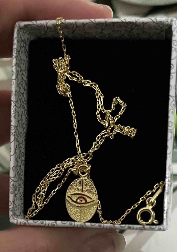 Bu kolyeyi benzersiz kılan, üzerindeki dövme metal dokusu ve düzensiz kenar hatlarıdır. Gerçek antik paraları andıran bu yapı, kolyeye yaşanmışlık hissi katar. Merkezdeki göz figürü, tarih boyunca pek çok kültürde “nazardan korunma”, “sezgi” ve “bilgelik” sembolü olarak kabul edilmiştir. Bu kolye, sadece bir aksesuar değil, aynı zamanda kullanıcıya eşlik eden koruyucu bir semboldür.