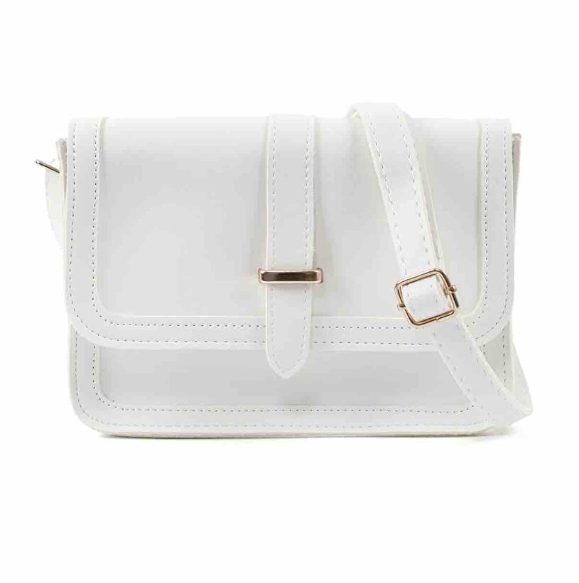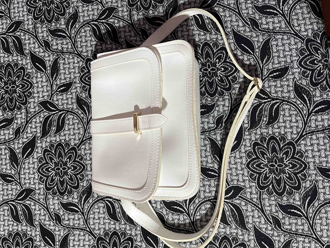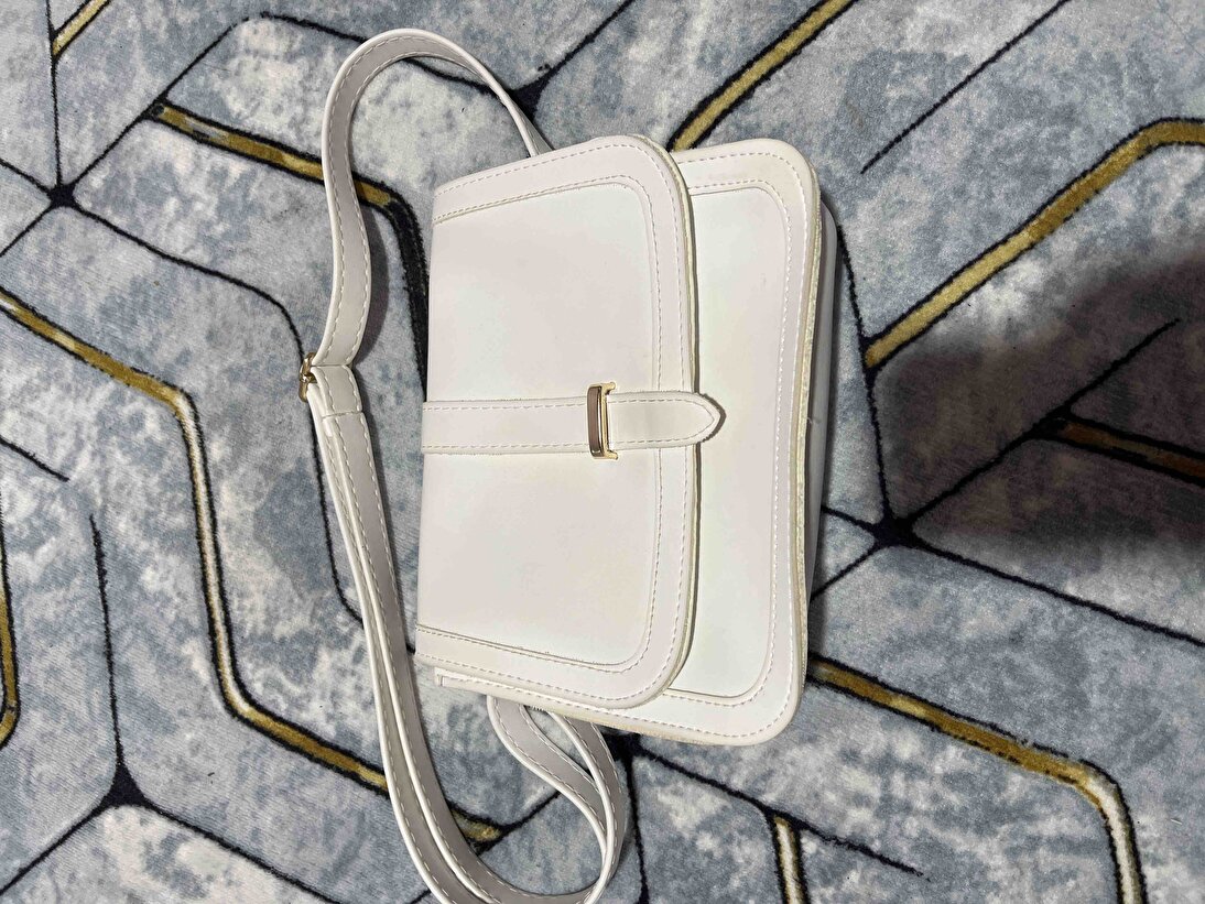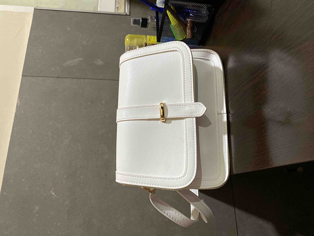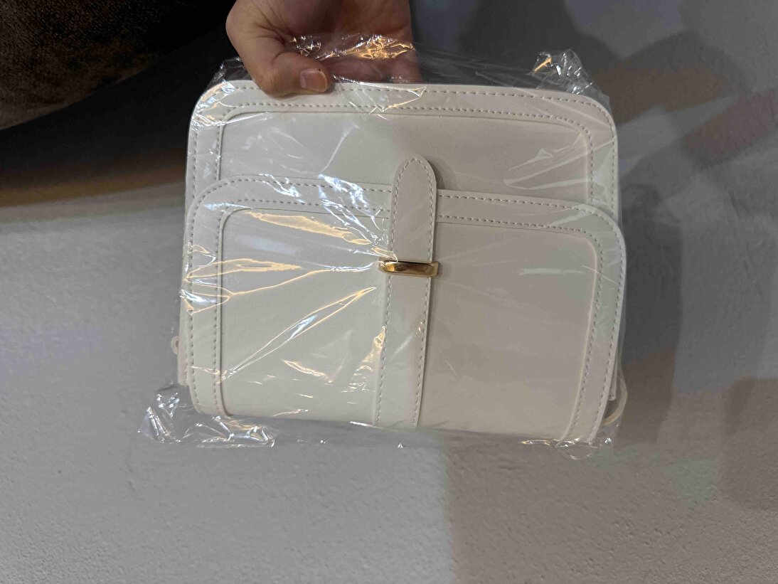 Kadın Beyaz Omuz Çantası | Suni Deri | İç Fermuarlı | Cepli | Çıtçıt Kapamalı | El,Kol ve Omuz Çantası