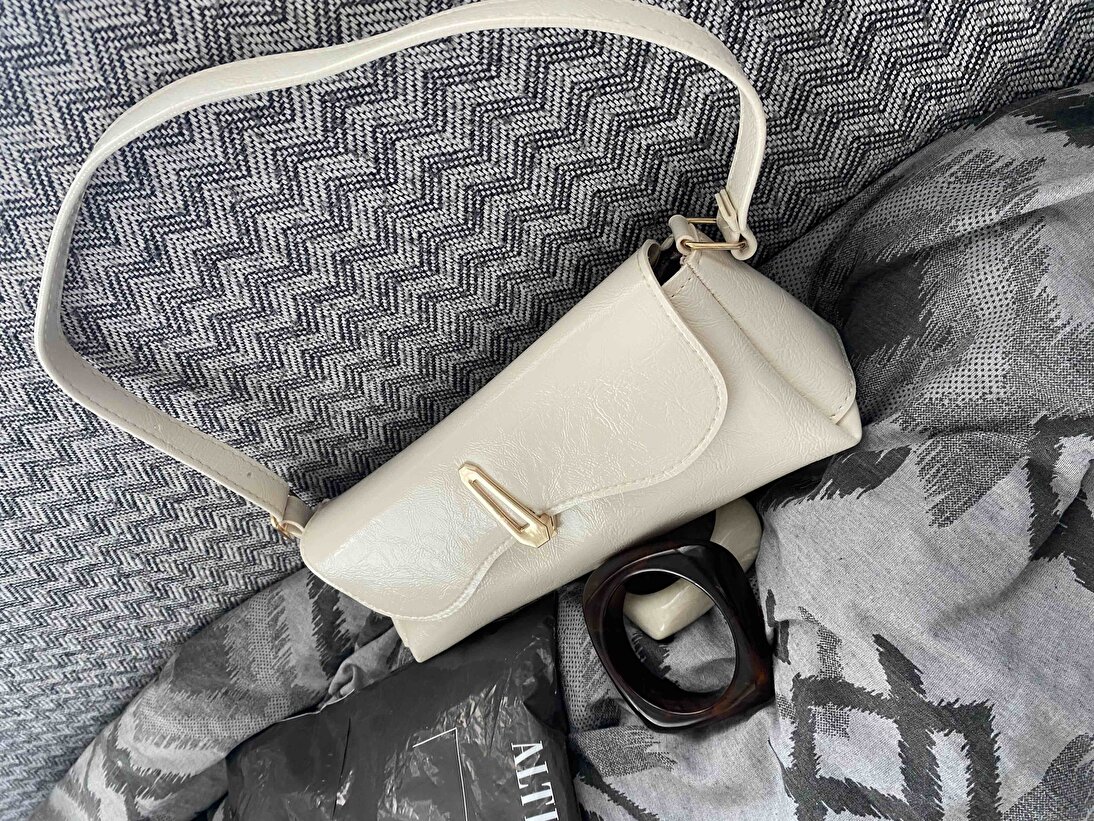 Kadın Krem Omuz Çantası | Kırışık Dokulu | Suni Deri | Özel Kilit Mıknatıslı | Kadın El, Kol ve Omuz Çantası