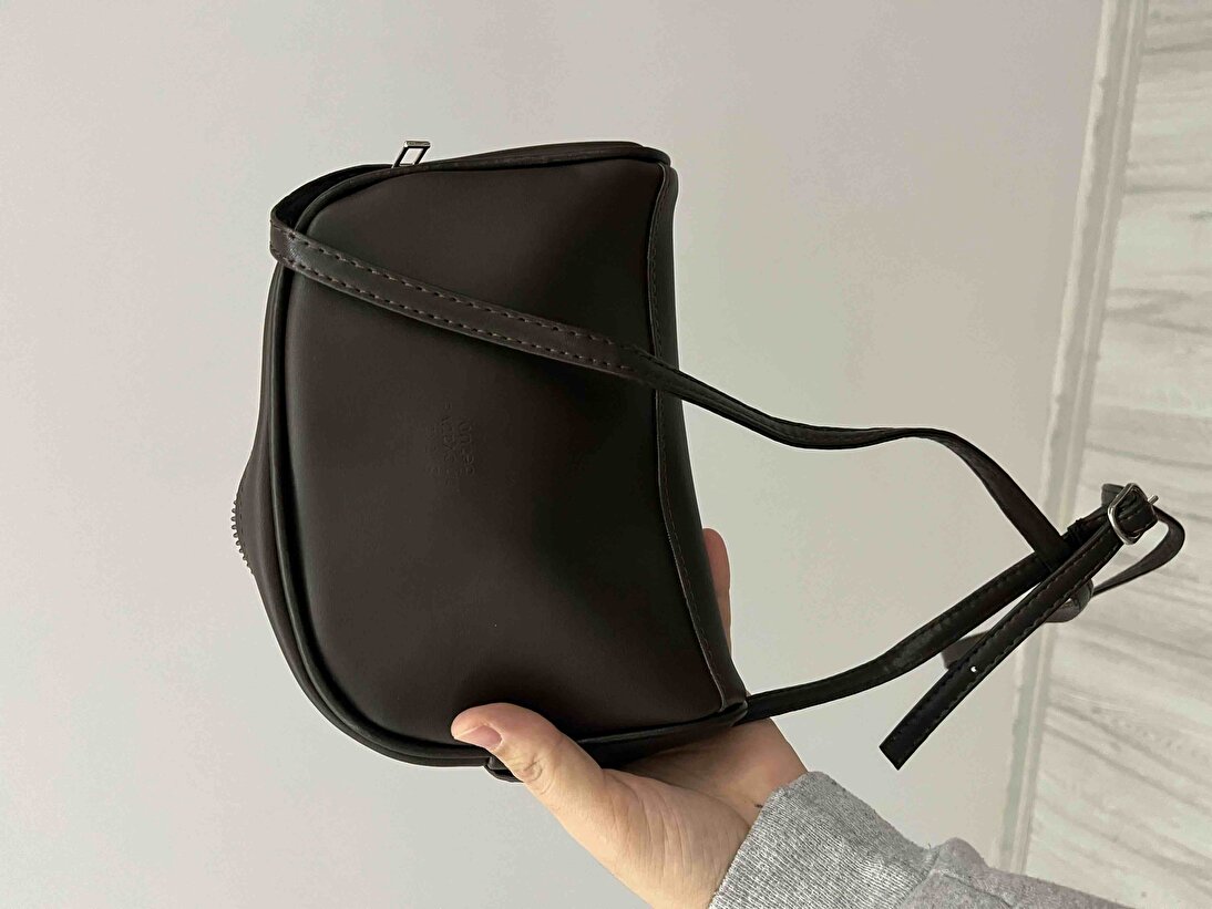Kahve Rengi Mini Urban Çapraz Askılı Tek Bölmeli Suni Deri Kol ve Omuz Çantası