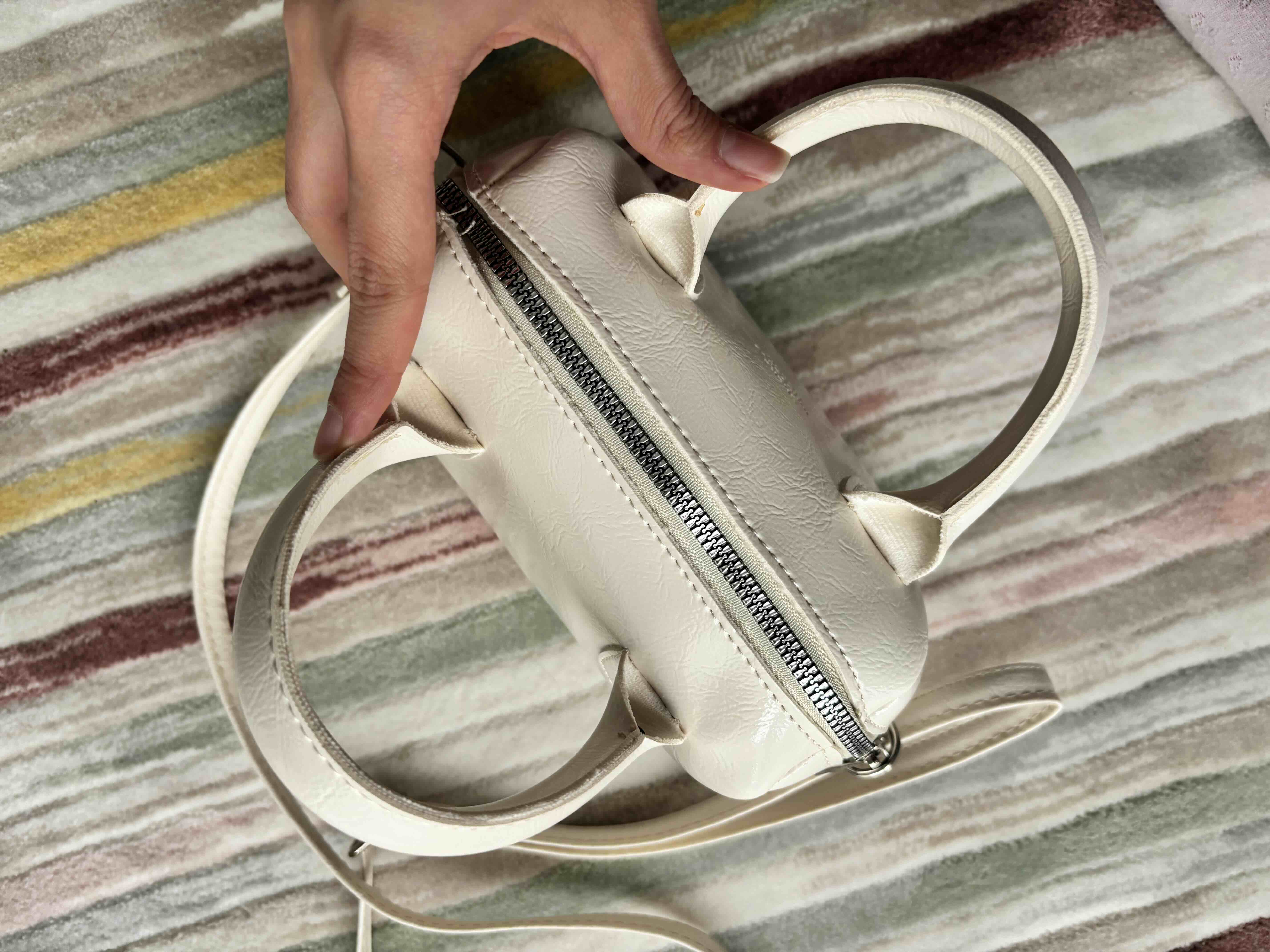 Minimalist tasarımı ve fermuarlı kapama detayı, eşyalarınızın güvenli bir şekilde taşınmasını sağlar. Krem rengi, her kombine uyumlu ve sofistike bir görünüm sunar.