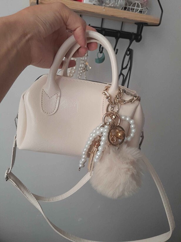 Kırışık Dokulu Krem Omuz Çantası | Suni Deri | Fermuarlı | Tek Bölmeli | Askılı | Kadın El, Kol ve Omuz Çantası