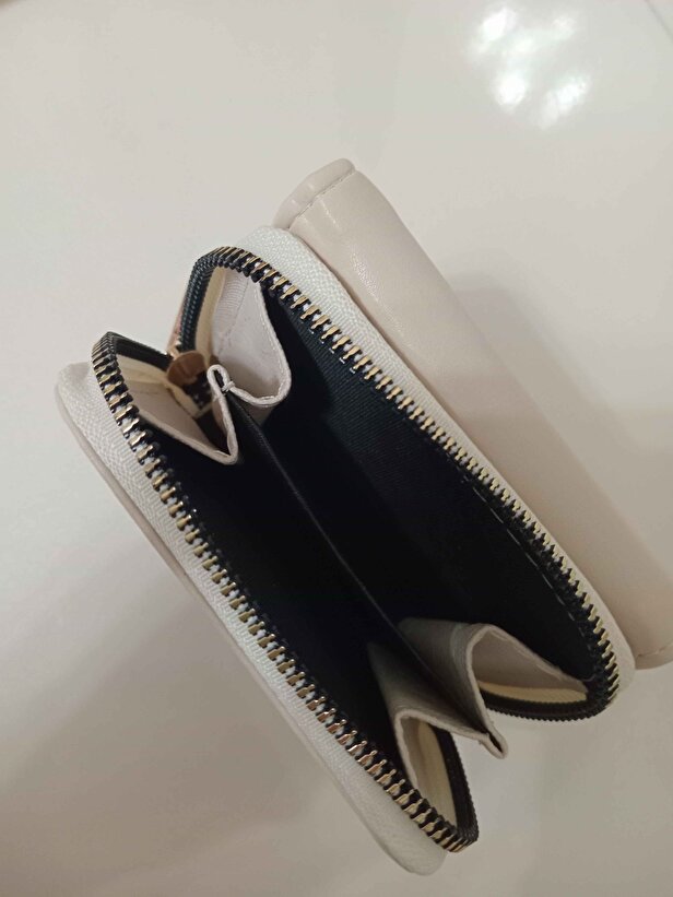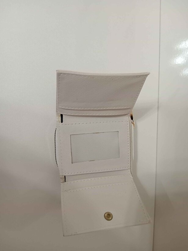 Minimalist tasarım ve çıtçıtlı kapak, cüzdanı hem güvenli hem de şık bir kullanım için ideal kılar. Zarif krem rengi, her çantayla uyumlu ve sofistike bir görünüm sağlar.
