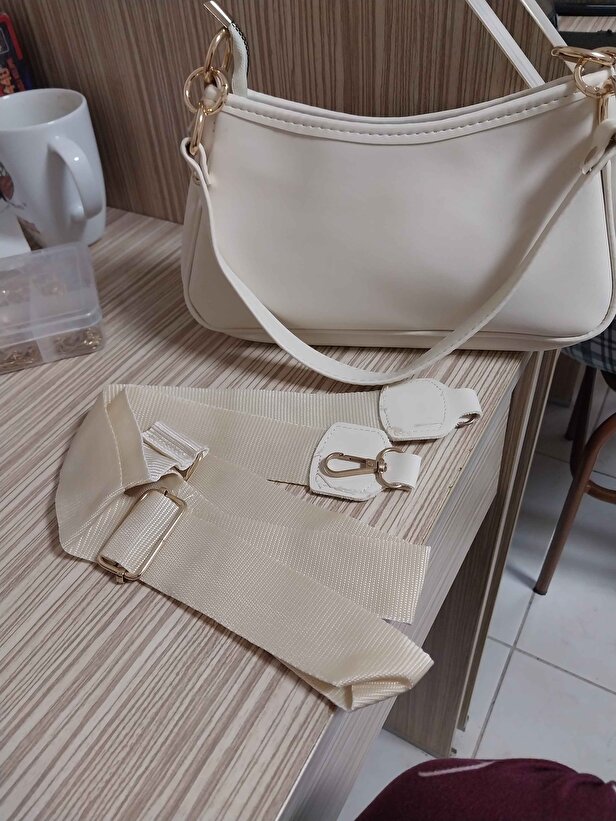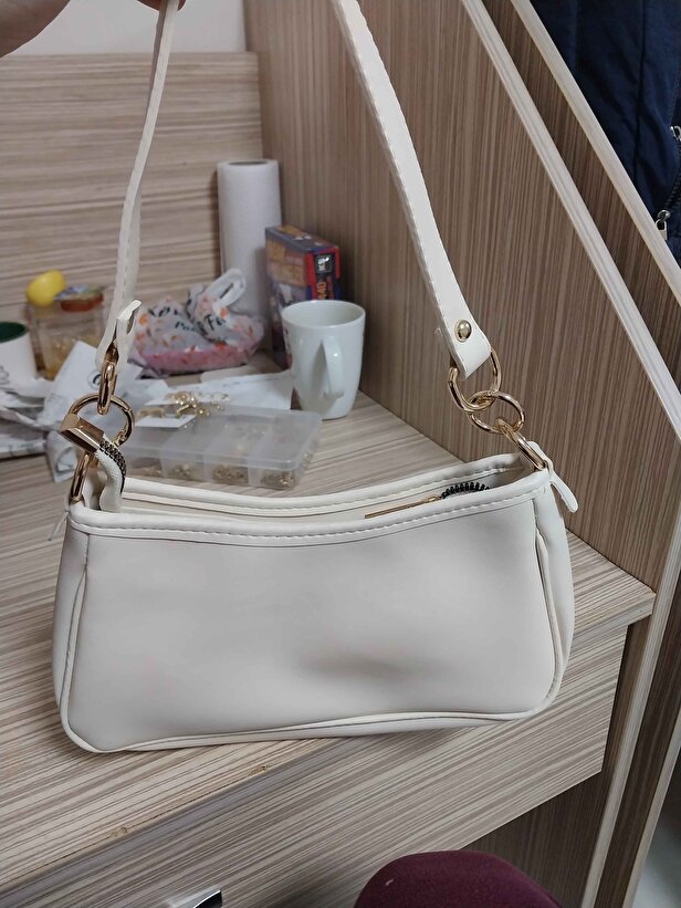 Krem Kadın Omuz Çantası | Suni Deri | Astarlı | Fermuarlı | Ayarlanabilir Askılı | El, Kol ve Omuz Çantası
