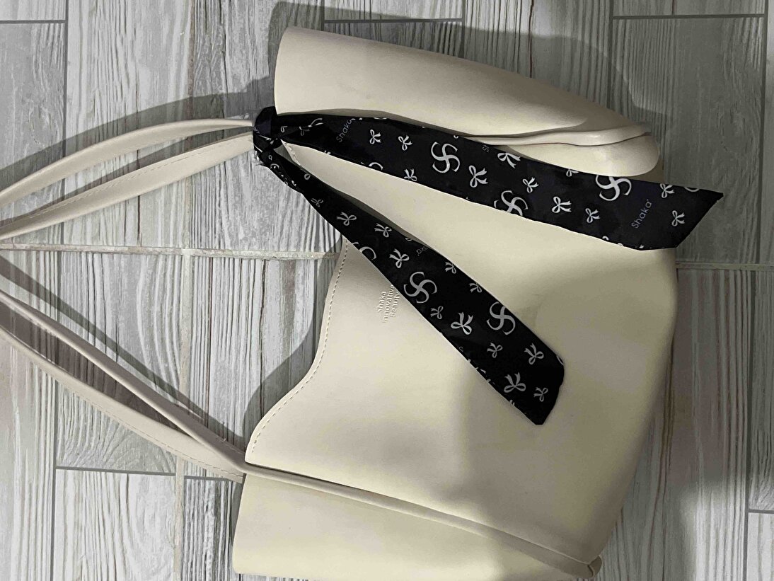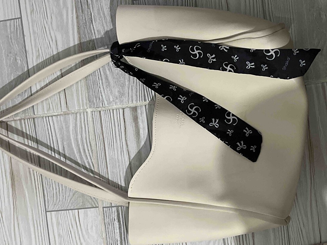 Krem Kadın Omuz Çantası | Suni Deri | Fermuarlı | Tek Bölmeli | Fular Hediyeli | El,Kol ve Omuz Çantası