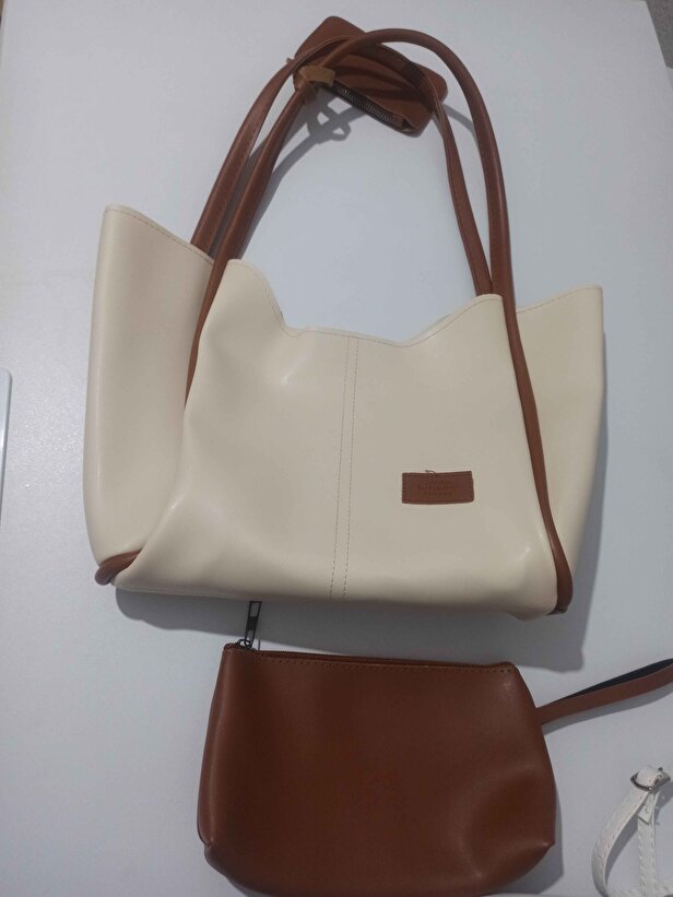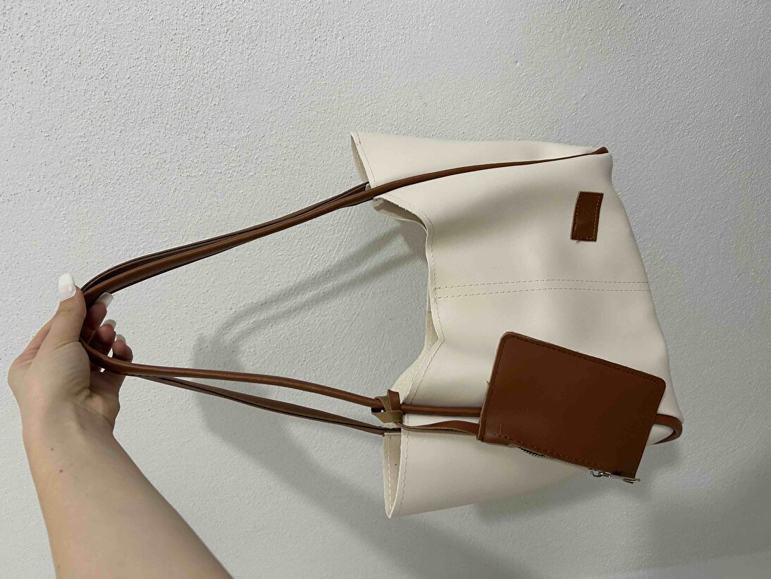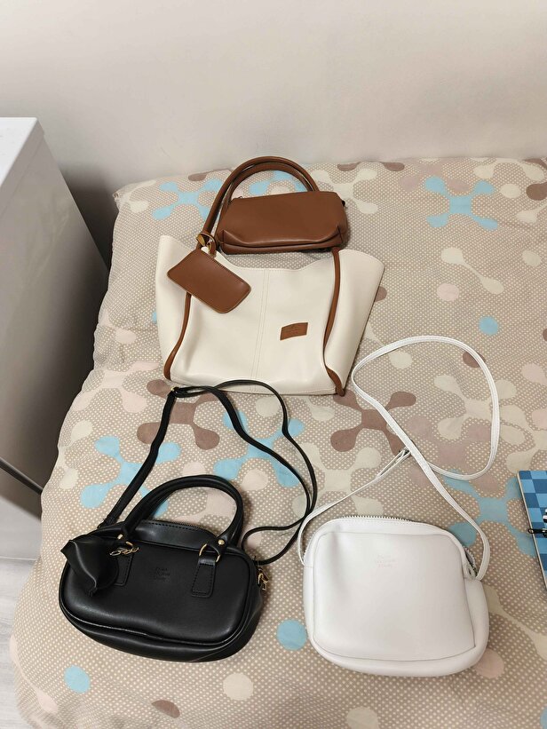 Krem Siyah Beyaz 3’lü Kadın Çanta Seti | Suni Deri | El Kol ve Omuz Çantası | 3’lü Çanta Seti