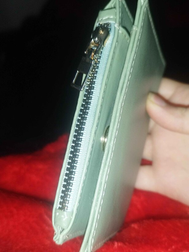 Cüzdan, kaliteli suni deri malzemeden üretilmiştir. Dayanıklı yapısı uzun süreli kullanım sağlar. Canlı mint yeşil rengi, cüzdana ferah ve dikkat çekici bir görünüm kazandırır.