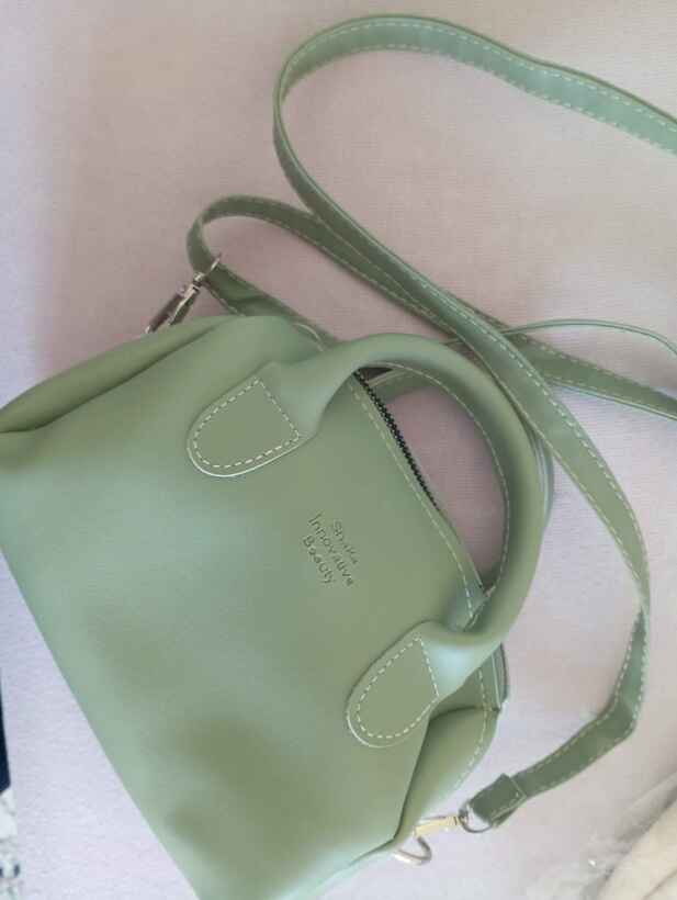 Şık ve kullanışlı Mint Yeşil Omuz Çantası, suni deri ve tek bölmeli tasarımıyla eşyalarınızı düzenli taşır. Fermuarlı ve askılı yapısı ile güvenli ve rahat kullanım sunar ve hem el, kol hem de omuz çantası olarak kullanılabilir.