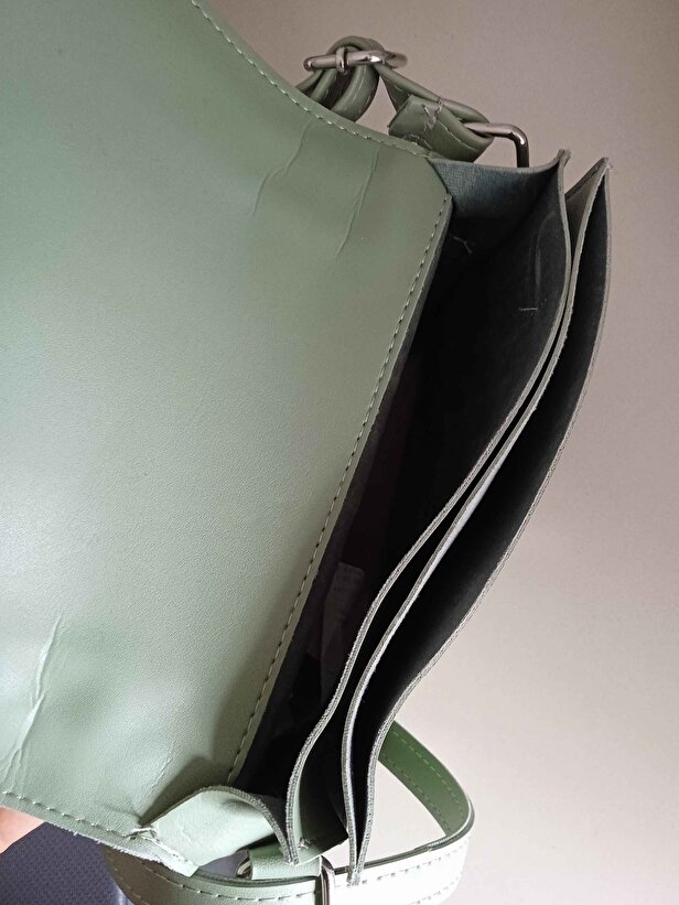 Çanta, dayanıklı suni deri malzemeden üretilmiştir ve uzun süreli kullanım sunar. Mint yeşili rengi, çantaya modern ve canlı bir görünüm kazandırır.