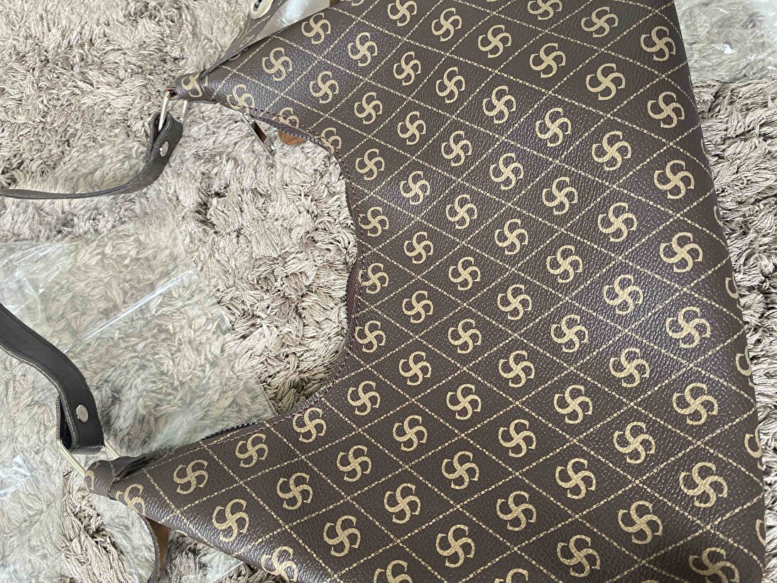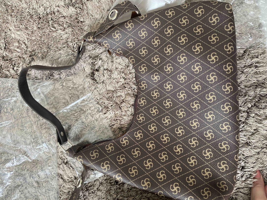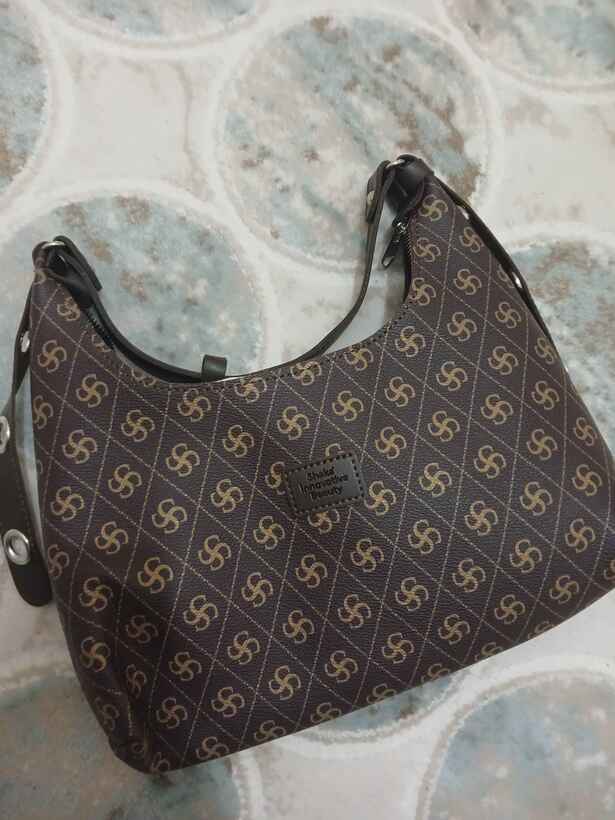 Çanta, dayanıklı suni deri malzemeden üretilmiştir. Kahverengi rengi ve monogram baskısı, her kombine uyumlu, klasik ve modern bir şıklık sunar.