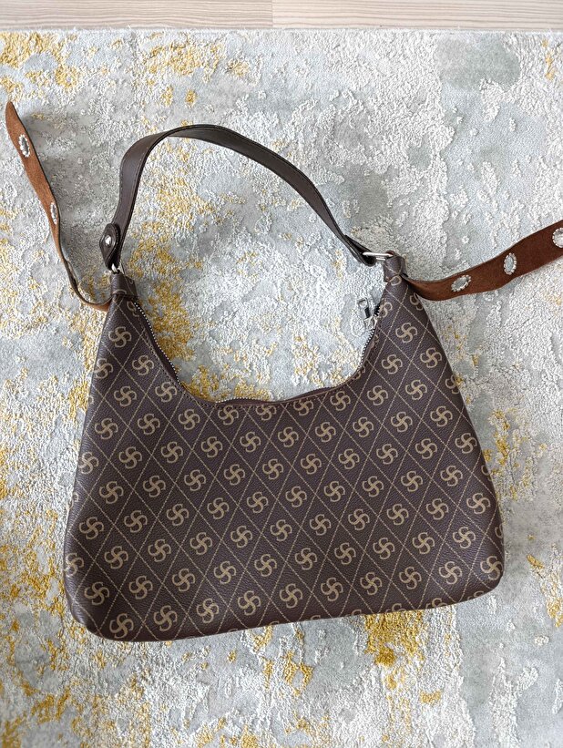 Monogram Baskılı Kahverengi Baget Kadın Kol ve Omuz Çantası – Şıklık ve Fonksiyonellik
