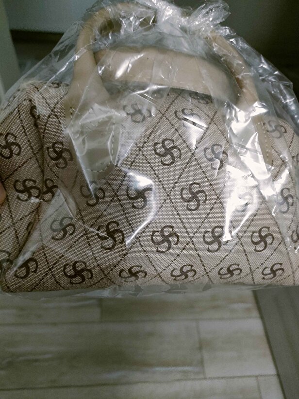 Çanta, dayanıklı suni deri malzemeden üretilmiştir. Monogram baskısı ve vizon rengi, modern bir şıklık sunar ve her kombine uyum sağlar.