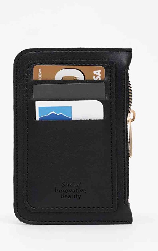 Siyah Kadın Cüzdan | Suni Deri | 6 Kartlık | Fermuarlı | Para Bölmeli | Kartlık | Kadın Cüzdan