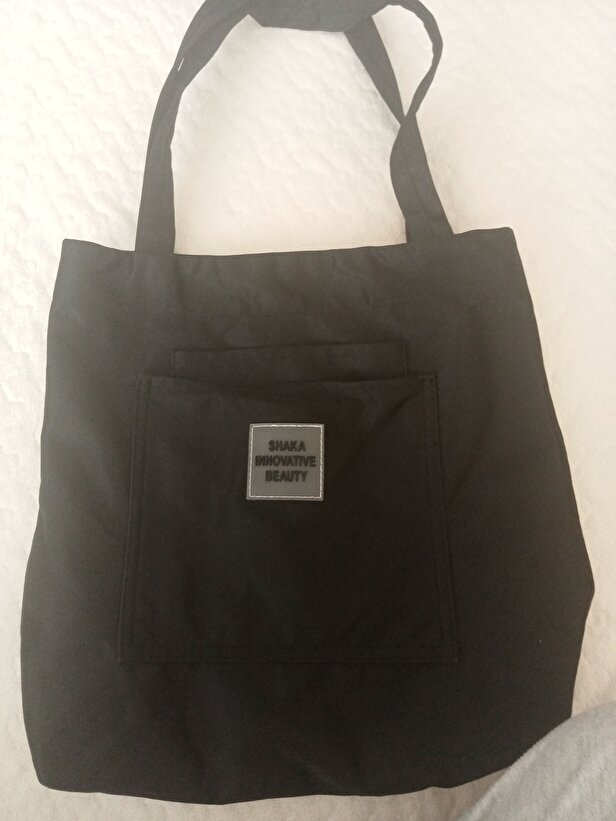 Siyah Kanvas Kumaş ,3 Bölmeli, Astarlı, Çıtçıtlı, El, Kol ve Omuz Çantası