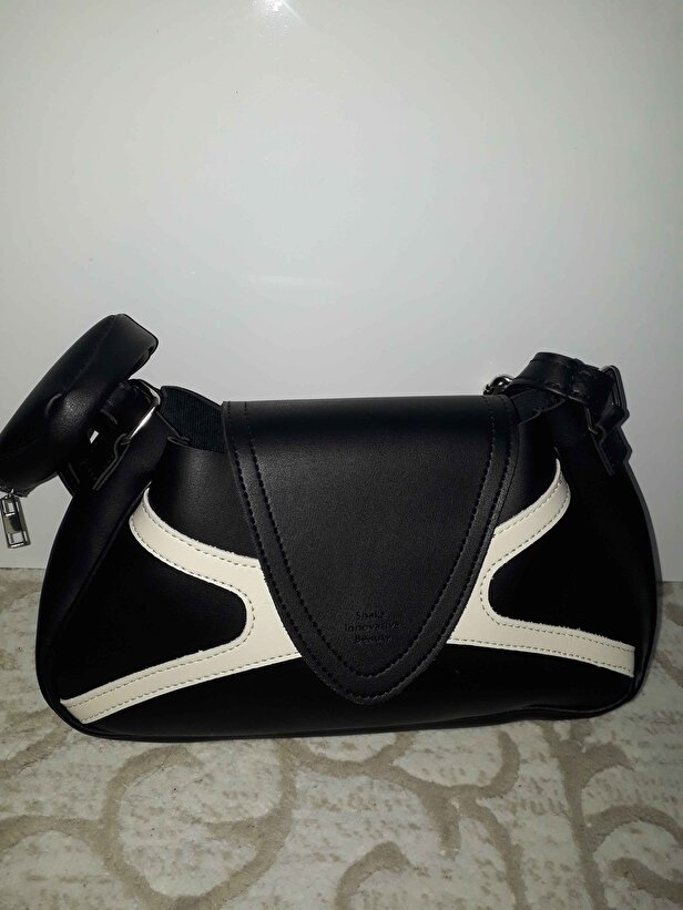 Siyah Krem Kadın Kol ve Omuz Çantası | Suni Deri | Tek Bölmeli | Cüzdanlı