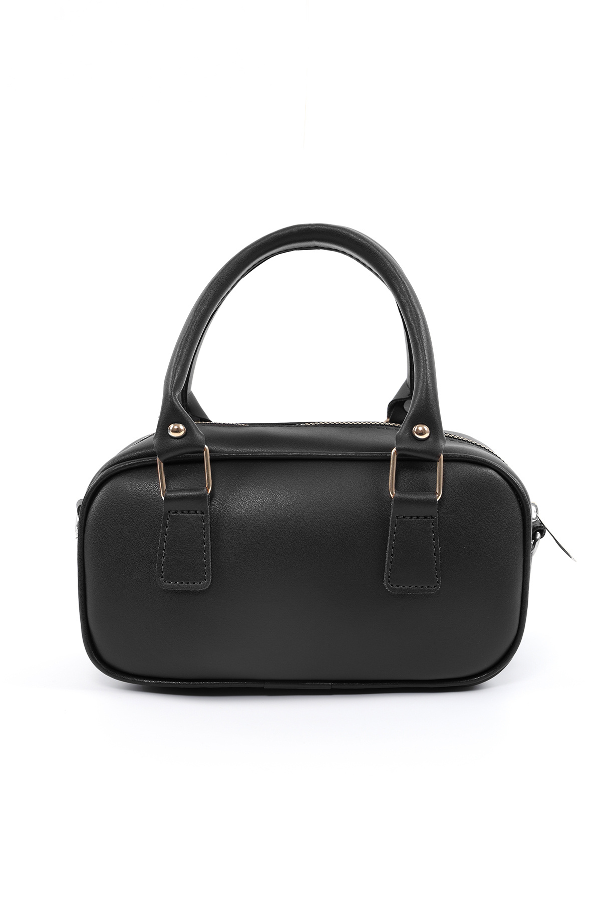 Siyah Suni Deri Kadın Omuz Çantası | Charm Detaylı | Fermuarlı | Askılı | Kadın El, Kol, Omuz Çantası