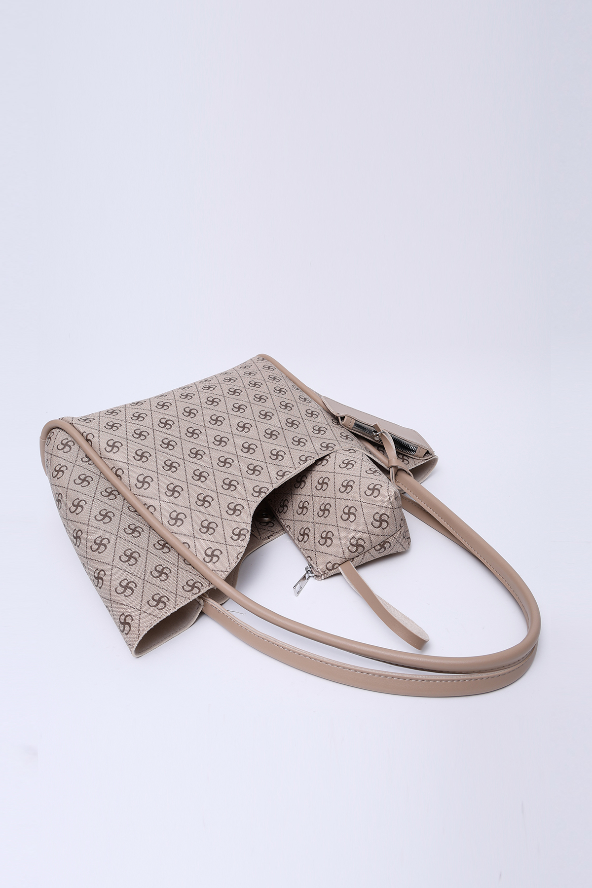 Vizon Kadın Omuz Çantası | Monogram Desenli | Çıtçıtlı | Suni Deri | Cüzdanlı | Makyaj Çantalı | Kadın El ve Omuz Çantası