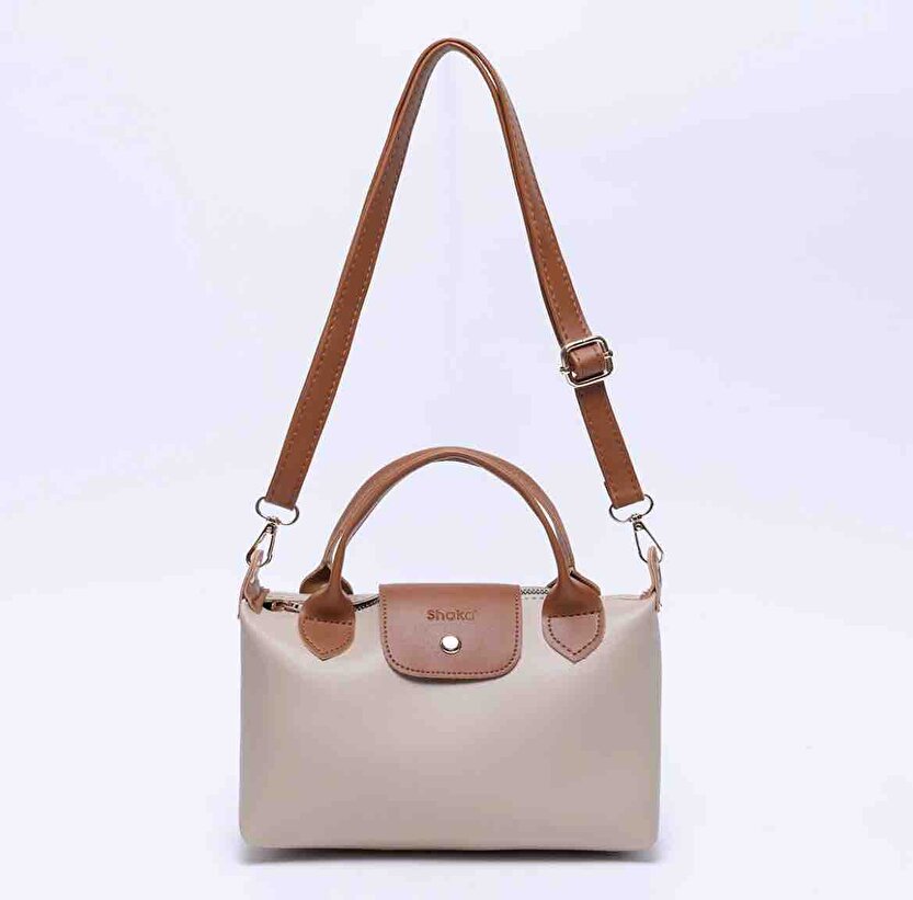 Şık ve fonksiyonel Vizon-Taba Kadın Çanta, suni deri, tek bölmeli ve çift askılı tasarımıyla eşyalarınızı güvenle taşır. Hem el, kol hem de çapraz omuz çantası olarak kullanılabilir ve günlük kullanım için idealdir.