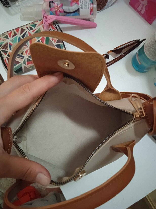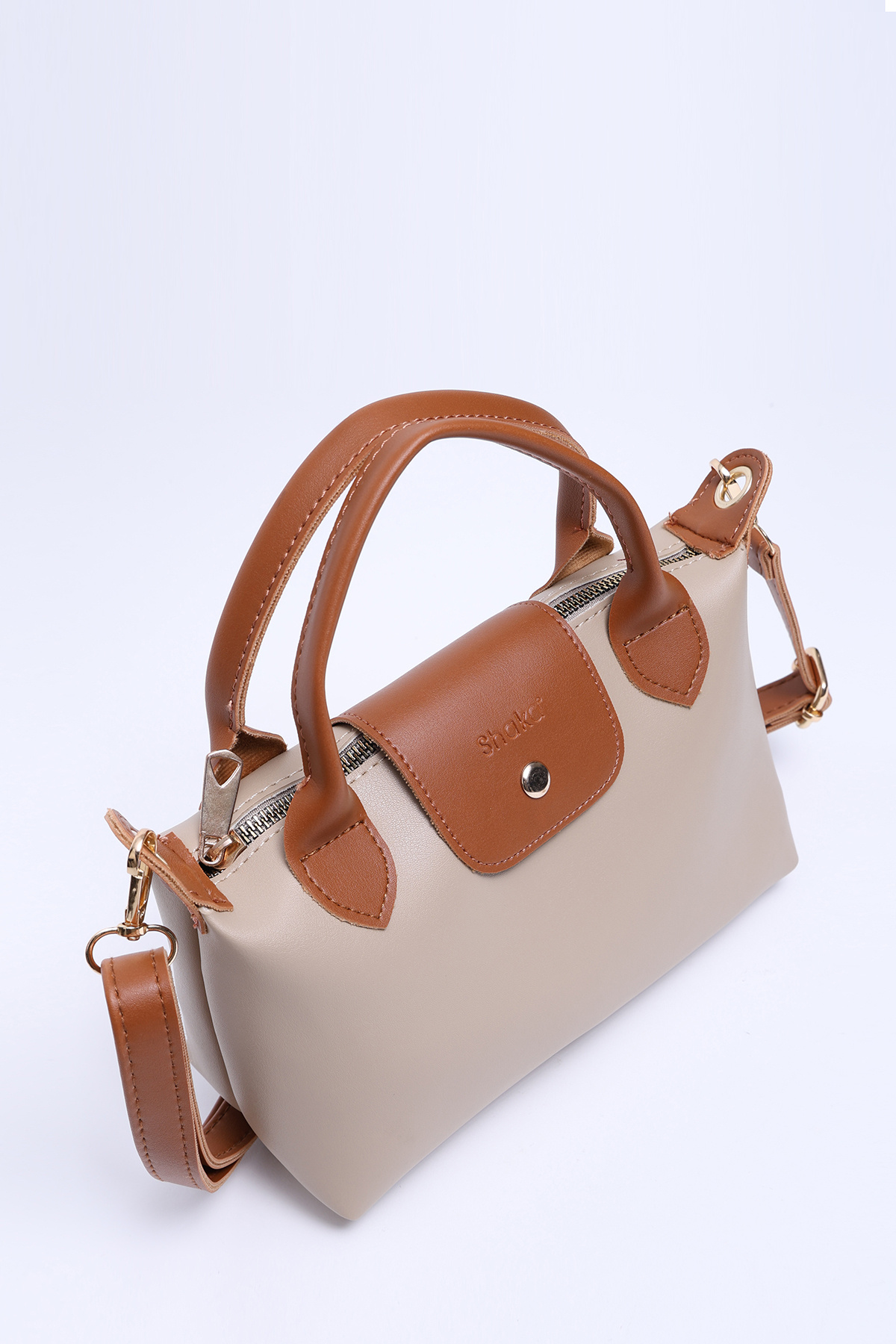 Çanta, dayanıklı suni deri malzemeden üretilmiştir. Vizon ve taba renkleri, her kombine uyum sağlayan sofistike ve modern bir görünüm sunar.