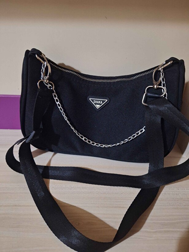 Şık ve fonksiyonel Zincir Detaylı Siyah Omuz Çantası, suni deri ve cüzdanlı tasarımıyla eşyalarınızı güvenle taşır. Ayarlanabilir askılı yapısı sayesinde hem çapraz omuz çantası hem de günlük kullanım için idealdir.